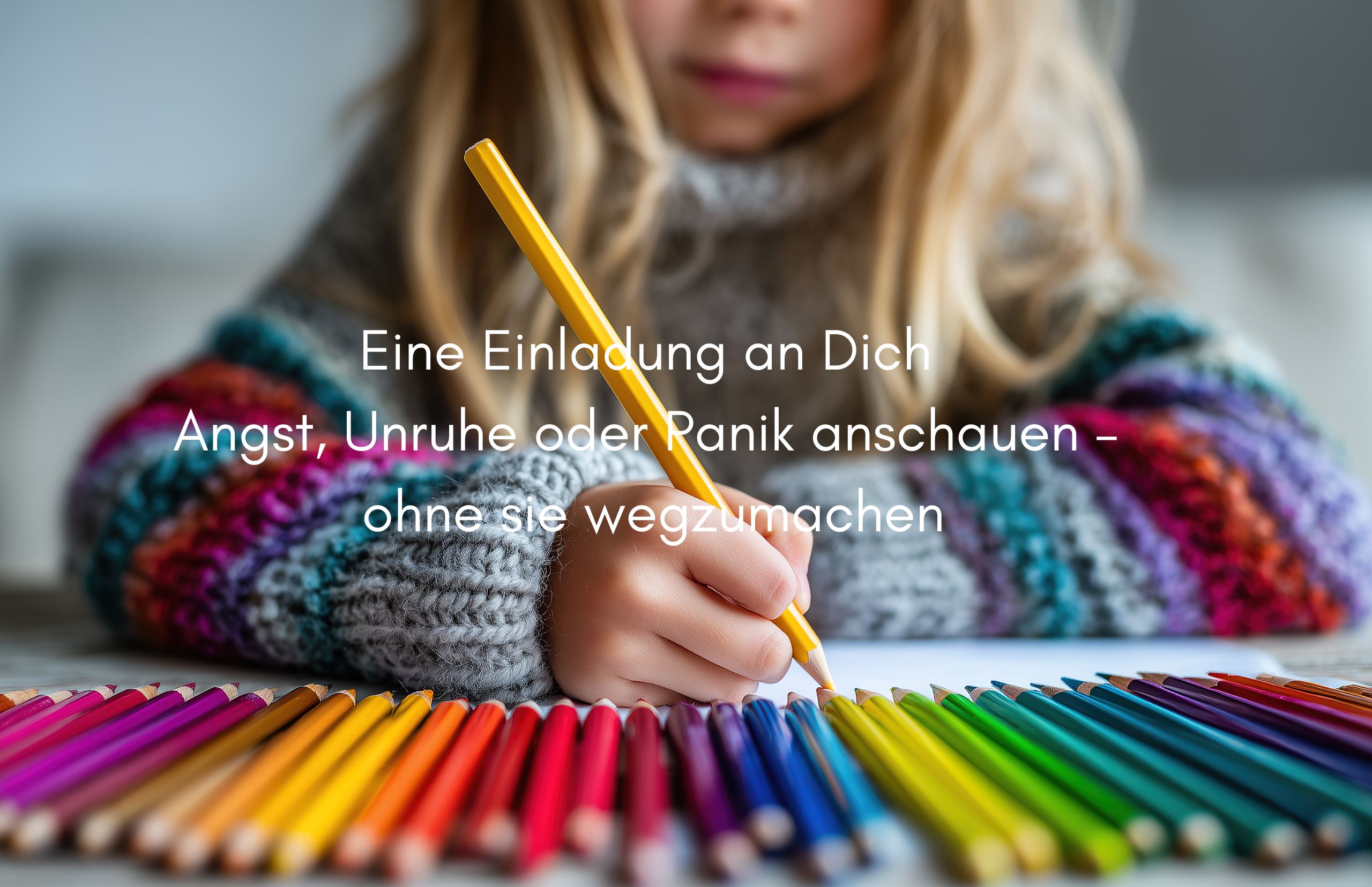 Vielleicht magst du es selbst ausprobieren. Nimm ein Blatt Papier. Schreibe das Wort Angst darauf, ohne wähle ein Thema was dich beschäftigt. Groß oder klein – so, wie es sich stimmig anfühlt. Dann nimm dir Farben. Oder Stifte. Oder einfach einen Bleistift. Und male die Buchstaben aus. Ohne richtig oder falsch. Ohne Bedeutung. Nur Bewegung, Farbe, Kontakt.